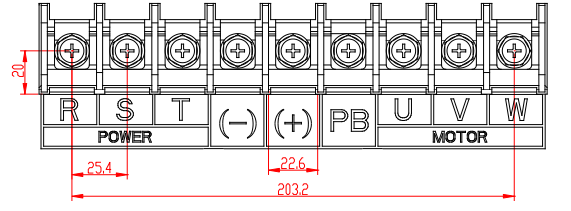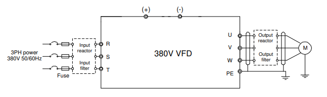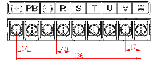 | (+) | Bus DC: Chân (+) và (-) có thể sử dụng để dùng chung Bus DC giữa các biến tần hoặc kết nối với bộ nguồn DC bên ngoài. |