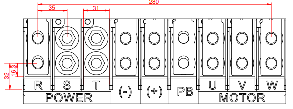 | R, S, T | Đầu vào nguồn AC 3 pha: Dùng để kết nối trực tiếp với lưới điện nguồn. |