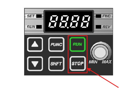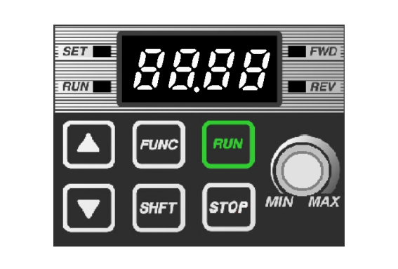 - Nút RUN/STOP: Chạy và dừng biến tần ở chế độ điều khiển trên bàn phím.