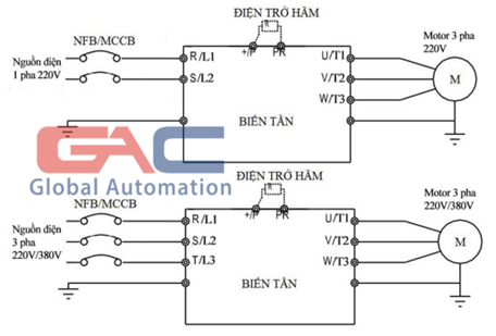 * Chân đối nối với những biến tần sử dụng điện trở hãm: