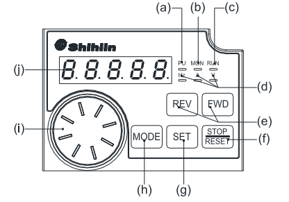(j) Đèn Led hiển thị Hiển thị tần số, thông số, giá trị thông số