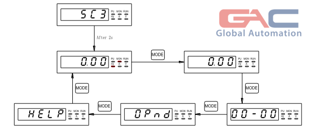 Đề xem biến tần đang hoạt động ở chế độ nào, nhấn Mode để theo dõi.