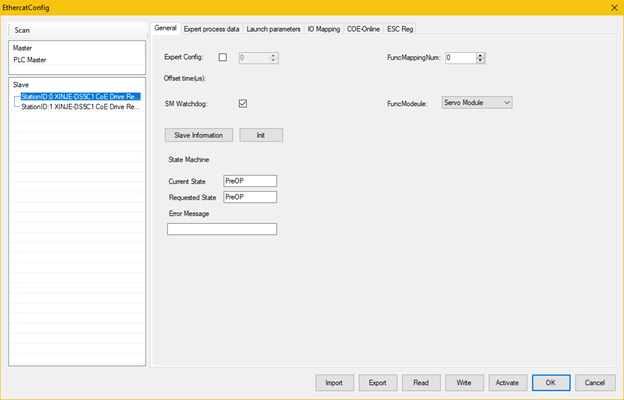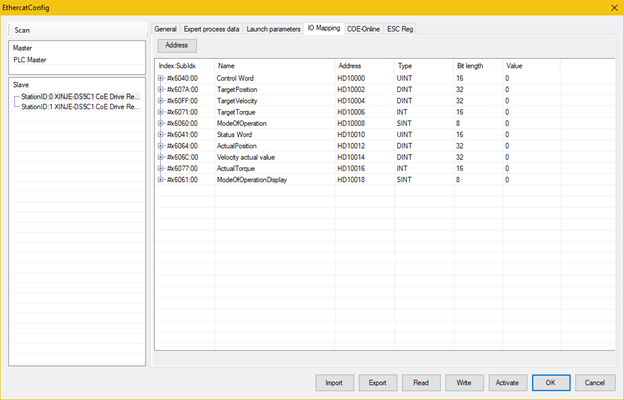 Activate: Dữ liệu cấu hình trong PLC hiện tại sẽ có hiệu lực ngay lập tức. Nó sẽ chuyển từ bất kỳ trạng thái nào của trạm slave sang Init, rồi sang trạng thái OP (Init → PreOP → Safeop → OP).