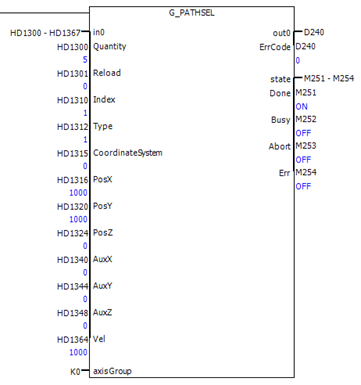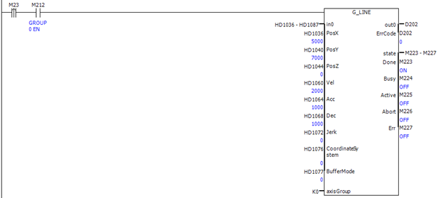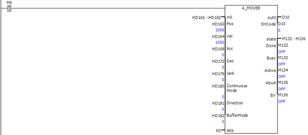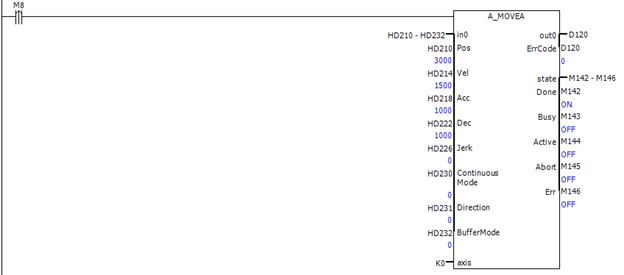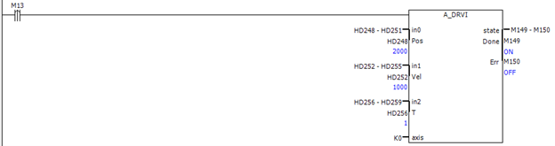 | M20003+50*N | At the position | ON: the command movement is completed, and the deviation between the given and feedback is within the positioning completion width |