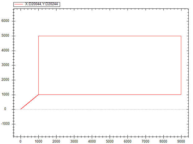 Ví dụ 3: Bắt đầu từ điểm (0,0), di chuyển đến điểm 1, rồi chạy theo quỹ đạo hình chữ nhật, khi đến các đỉnh của hình chữ nhật thì dừng lại để thực hiện thao tác bật đầu ra Y0 trong 2 giây rồi chạy tiếp.