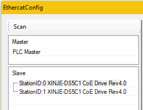 Từ giao diện EtherCAT Master, nhấn vào biểu tượng Scan để tìm các thiết bị đang được kết nối đến thiết bị chủ.