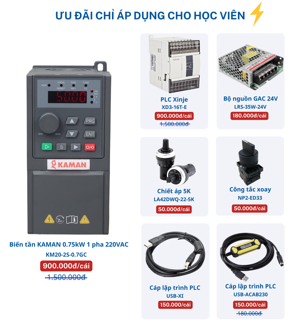 💡 Đặc biệt, trong buổi học về Kaman, học viên sẽ được chia sẻ thêm các kinh nghiệm triển khai thực tế tại nhà máy, tối ưu chi phí và thay thế các dòng biến tần phổ biến trên thị trường.