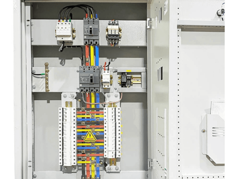 Trong nhà xưởng, cầu dao tự động MCB thường xuất hiện trong các tủ điều khiển phụ, tủ máy, tủ PLC hoặc tủ điện cấp nguồn cho thiết bị điều khiển. Ví dụ, một tủ điều khiển băng tải có thể dùng MCB riêng cho nguồn điều khiển 220VAC, MCB cho bộ nguồn 24VDC, MCB cho quạt tủ điện và MCB cho ổ cắm bảo trì.