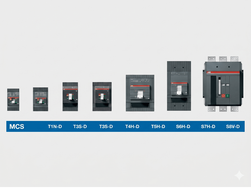 MCS là loại MCCB ABB chỉ có chức năng đóng cắt, không có bảo vệ tự động. Thiết bị thường được sử dụng như một công tắc cách ly trong hệ thống điện.