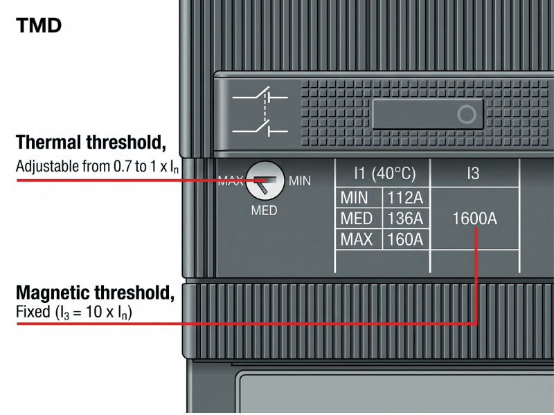 Trip unit từ nhiệt trong MCCB ABB hoạt động dựa trên nguyên lý giãn nở nhiệt và từ tính. Các dòng như TMF, TMD, TMA cho phép điều chỉnh linh hoạt.