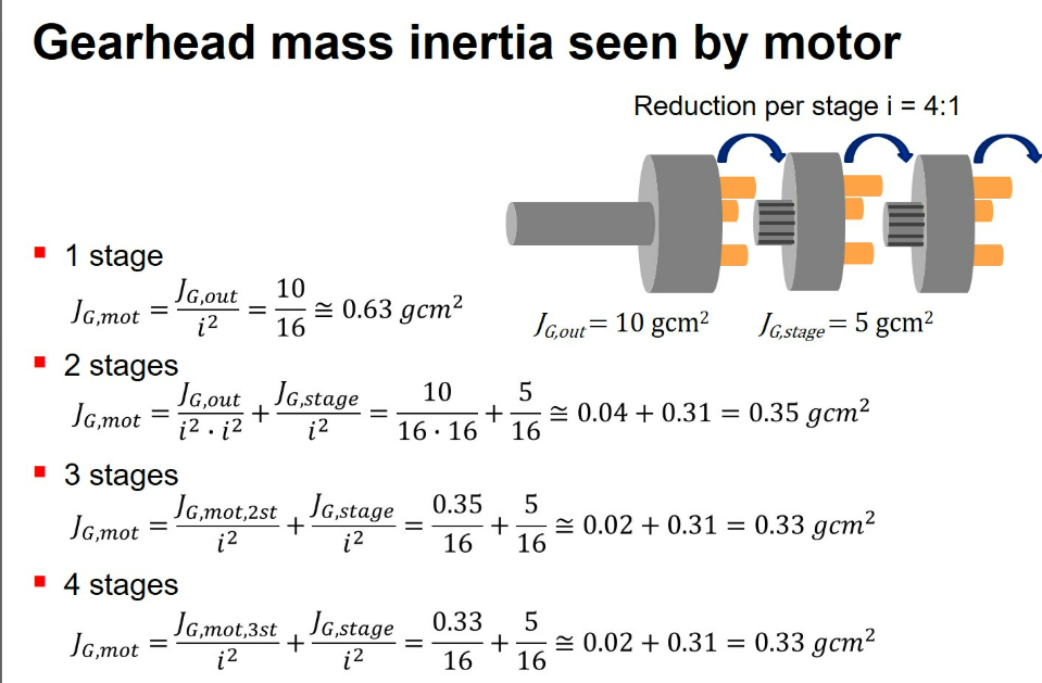Một nguyên tắc vật lý nền tảng trong truyền động cơ khí là moment quán tính của tải khi được “nhìn” từ phía trục động cơ sẽ giảm đi theo bình phương của tỷ số truyền. Công thức này cho thấy sức mạnh to lớn của hộp số. Ví dụ, nếu bạn sử dụng một hộp số giảm tốc tải nặng có tỷ số truyền là 10:1, quán tính thực tế của tải trọng khổng lồ kia khi tác động lên trục động cơ sẽ giảm đi 100 lần (10 bình phương).