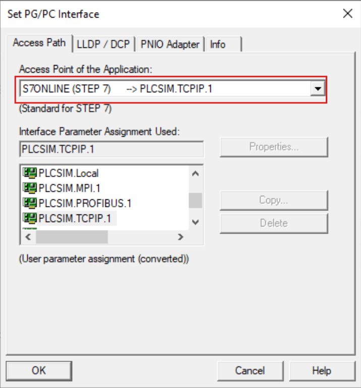 • Bước 3: Cấu hình PG/PC Interface