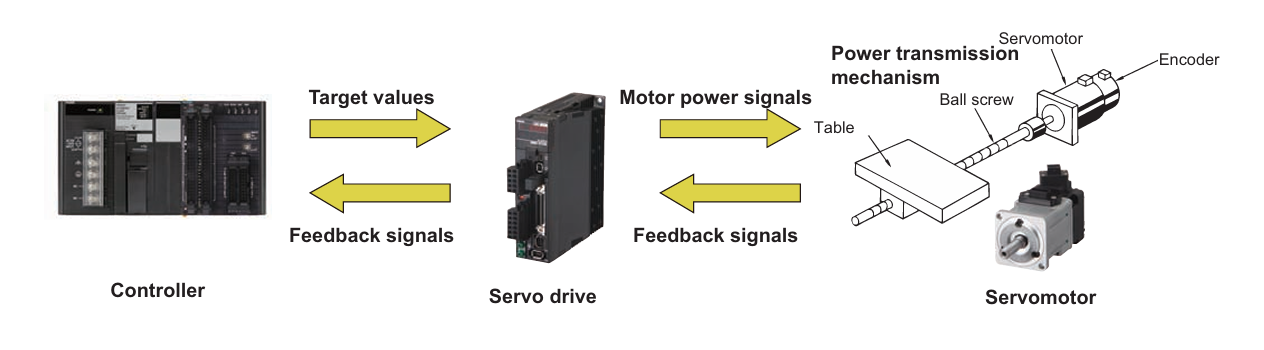 Một bộ servo hoàn chỉnh thường gồm ba phần. Thứ nhất là servo motor, nơi tạo ra chuyển động quay. Thứ hai là servo drive, nơi xử lý lệnh điều khiển, cấp dòng phù hợp cho motor và giám sát trạng thái hoạt động. Thứ ba là encoder, nơi phản hồi vị trí và tốc độ về drive để khép kín vòng điều khiển.