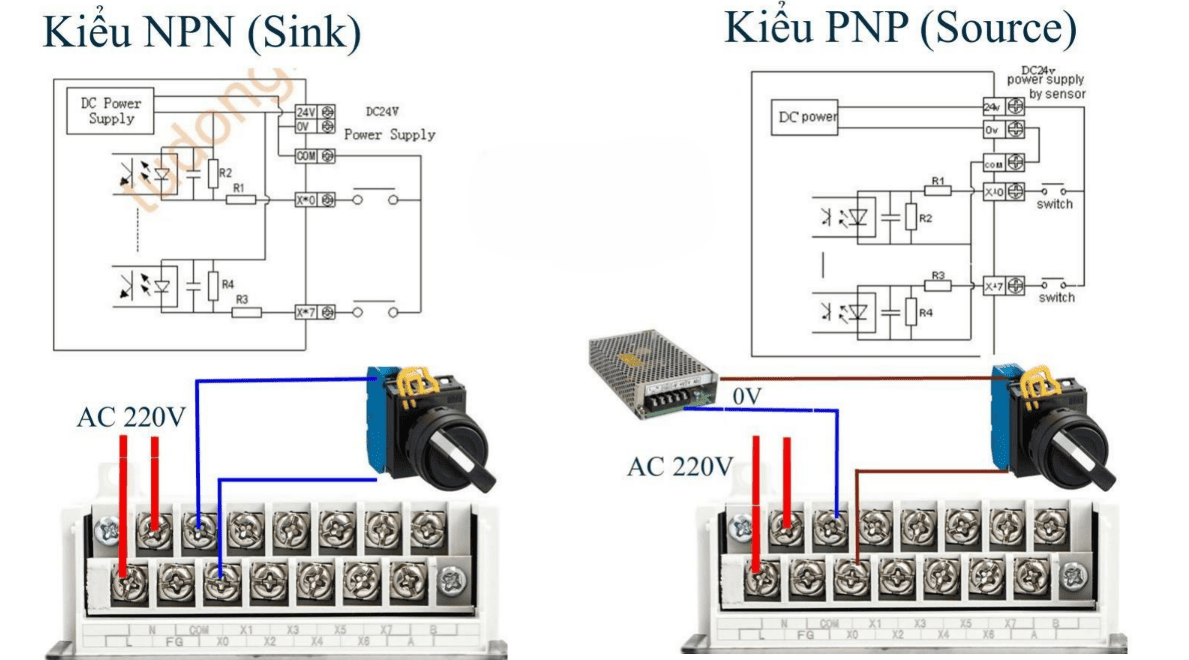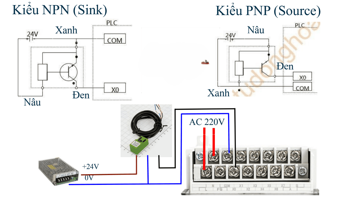 Hãy nhớ bản chất: PNP cấp dương, NPN kéo âm. Sau đó đối chiếu với chân COM của PLC để xác định đầu vào là sink hay source.