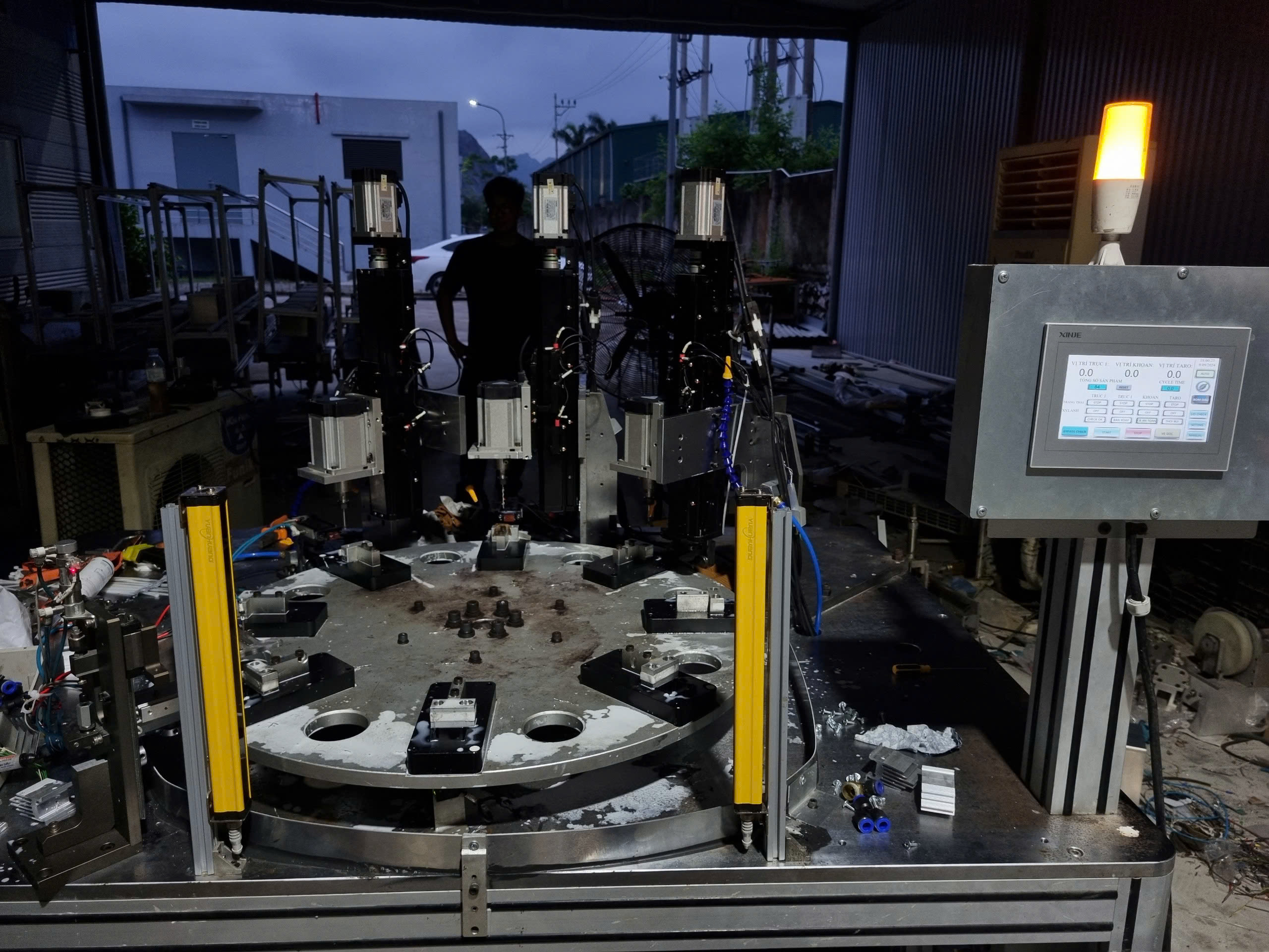 Máy taro ren tự động là thiết bị cốt lõi trong quá trình gia công cơ khí, chuyên dùng để tạo ren trên bề mặt các chi tiết kim loại. Với sự hiện diện của 6 trục servo, máy này không những nâng cao độ chính xác mà còn tối ưu hóa hiệu suất công việc. Các quy trình lấy dấu, khoan, và taro được thực hiện một cách liên tục và tự động, giảm thiểu thời gian thao tác và tối đa hóa năng suất.
