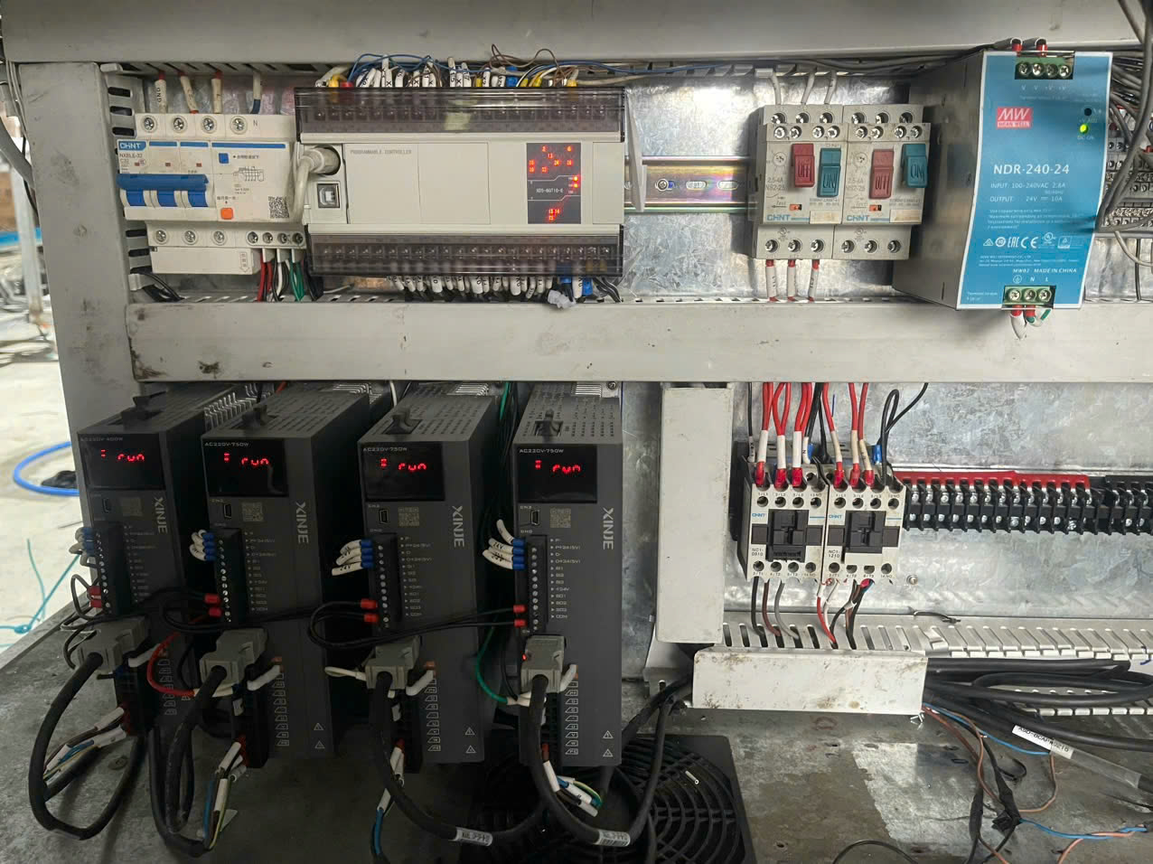 - Hệ thống điều khiển PLC: Quản lý tất cả các hoạt động của máy, từ việc điều phối hoạt động của các trục servo đến việc giám sát quá trình.