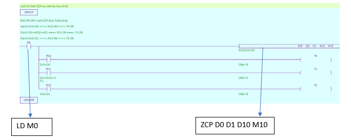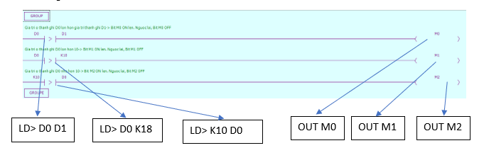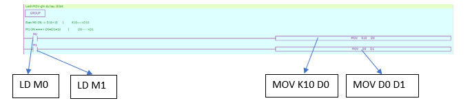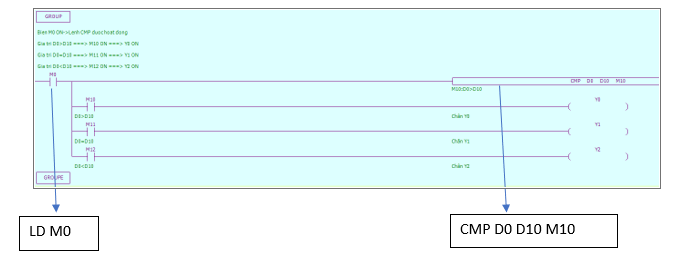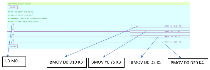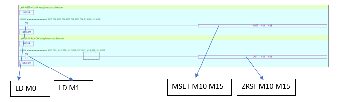 + Khi M0 ON thì M10 ON, M11 ON, M12 ON, M13 ON, M14 ON, M15 ON.