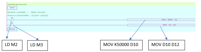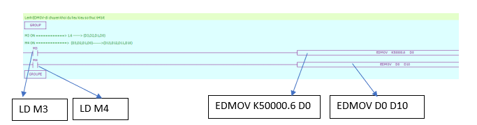 Chương trình PLC sử dụng lệnh 32 bit EDMOV: