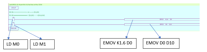 Chương trình PLC sử dụng lệnh 16 bit EMOV: