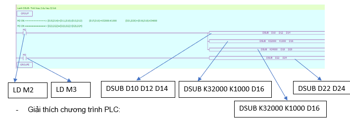 Chương trình PLC sử dụng lệnh tính hiệu 32 bit DSUB: