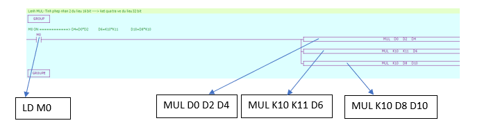 Chương trình PLC sử dụng lệnh tính tích 2 dữ liệu 16 bit MUL: