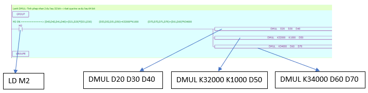 Chương trình PLC sử dụng lệnh tính hiệu 32 bit DMUL: