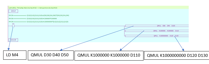 Chương trình PLC sử dụng lệnh tính hiệu 64 bit QMUL: