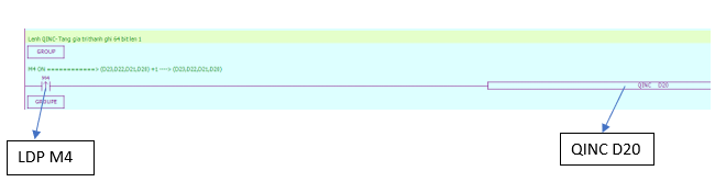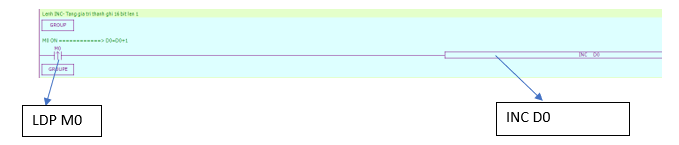 Chương trình PLC sử dụng lệnh tăng dữ liệu thêm 1 đơn vị INC: