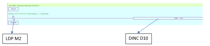 Chương trình PLC sử dụng lệnh tăng dữ liệu thên 1 đơn vị DINC: