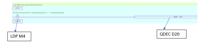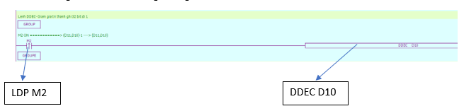 Chương trình PLC sử dụng lệnh giảm dữ liệu đi 1 đơn vị DDEC: