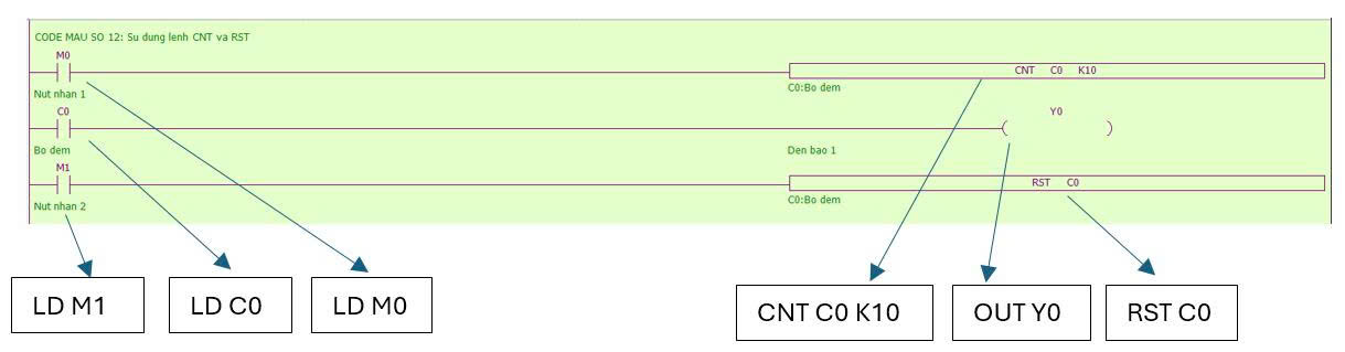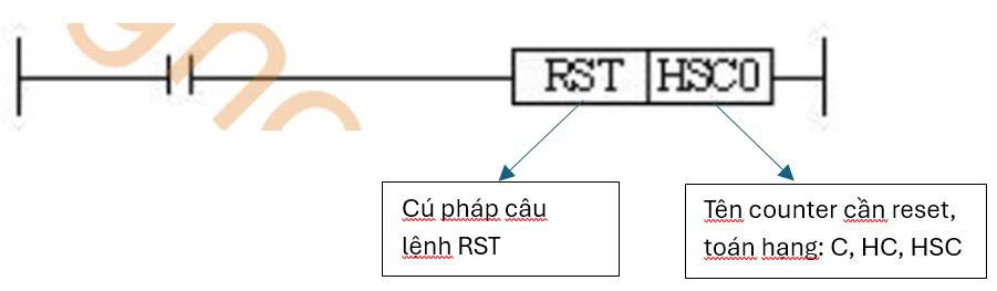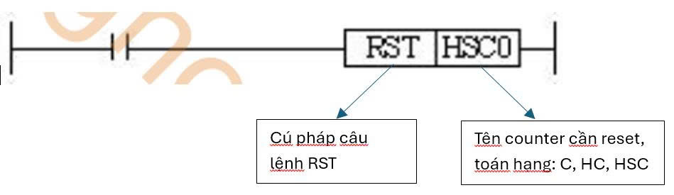 - Lệnh RST : lệnh RST được sử dụng dùng để RESET counter đếm.