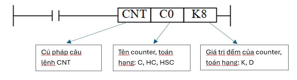- Lệnh CNT: Bộ đếm lên 16bit không lưu trữ khi tắt nguồn, điều khiển trạng thái logic của đầu ra bộ đếm.