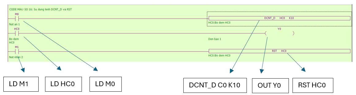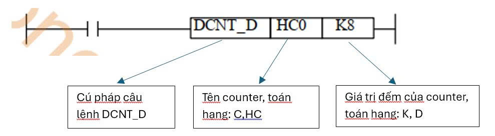 - Lệnh CNT_D : lệnh CNT_D là lệnh đếm lùi counter 16 bit.