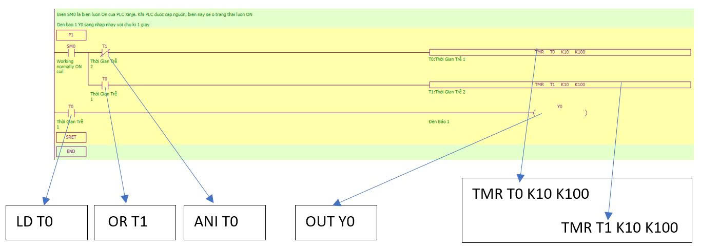 - Giải thích chương trình PLC: