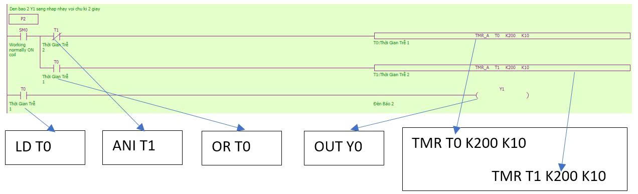 + Trong ví dụ trên: thời gian đếm là 1 giây vì 100*10 = 1000ms. Muốn đặt thời gian là 10s thì chỉ cần đổi K100 thành K1000.