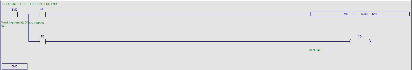+ Khi X0 ON lên thì đầu ra M0 On lên, X0 OFF thì đầu ra M0 OFF.