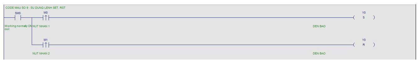 - Lệnh SET : lệnh SET được sử dụng dùng để ON tín hiệu bit ngay cả khi điều kiện đầu vào tắt.