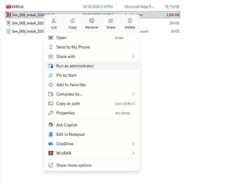 Bước 2: Truy cập vào thư mục sau khi giải nén và chạy file thực thi Sim EKB dưới quyền quản trị (Run as administrator).