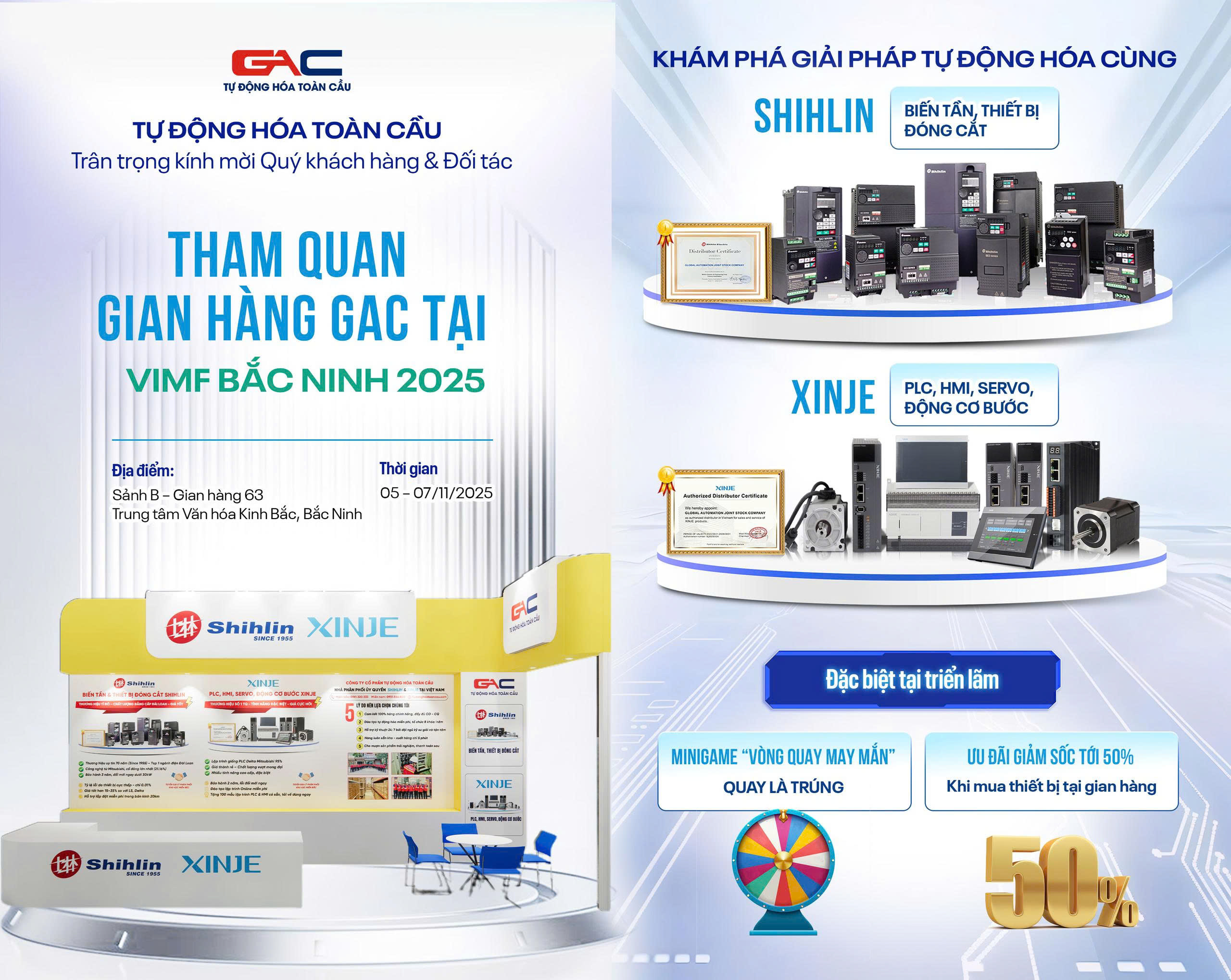 Năm nay, Công ty Cổ phần Tự Động Hóa Toàn Cầu (GAC) mang đến gian hàng đặc biệt, quy tụ hai thương hiệu hàng đầu châu Á – SHIHLIN (Đài Loan) và XINJE (Trung Quốc), hứa hẹn đem lại nhiều trải nghiệm hữu ích cho khách tham quan.