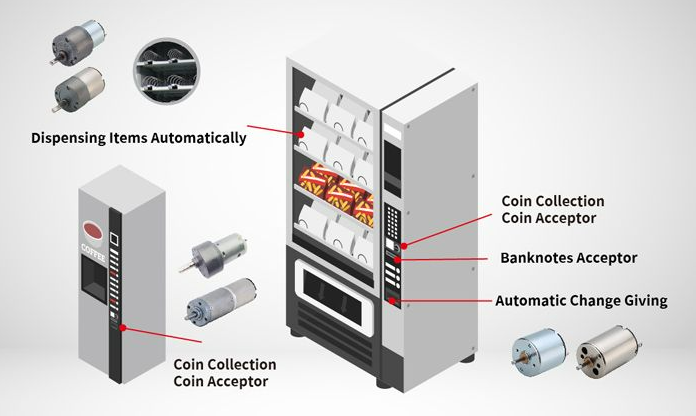 Ngoài ra, các máy bán hàng tự động sử dụng hàng chục motor giảm tốc mini để xoay lò xo đẩy bánh kẹo, nước ngọt ra khay nhận. Hay trong các biển quảng cáo xoay, tủ trưng bày đồng hồ, trang sức, hộp số giúp tạo ra chuyển động quay chậm rãi, thu hút sự chú ý của khách hàng mà không gây ra tiếng ồn khó chịu.